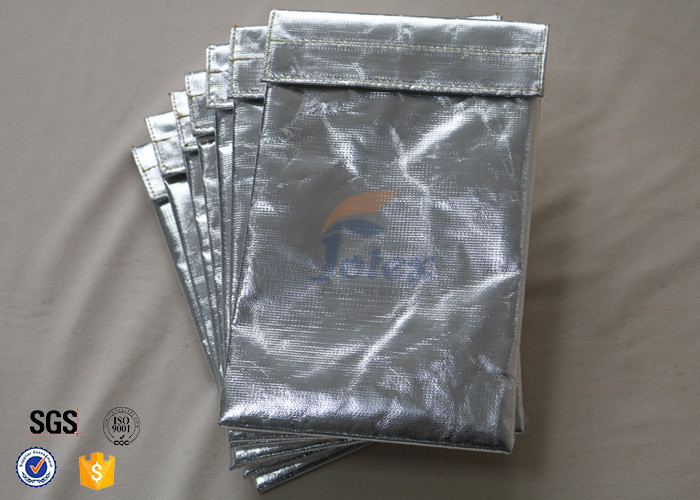 Outside materials of this fireproof bag are fireproof fiberglass fabric with a laminated aluminium foil layer. Fiberglass fabric provides improved resistance to abrasion, flexing, tear, puncture and chemical. Aluminium foil layer can resist 95% radiant heat.